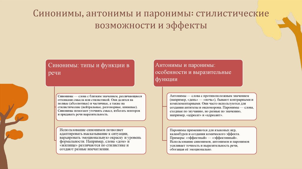 Синонимы, антонимы и паронимы: стилистическиевозможности и эффекты
