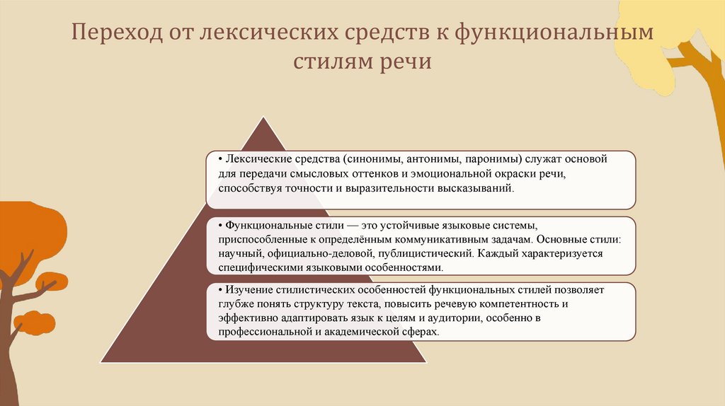 • Лексические средства (синонимы, антонимы, паронимы) служат основой