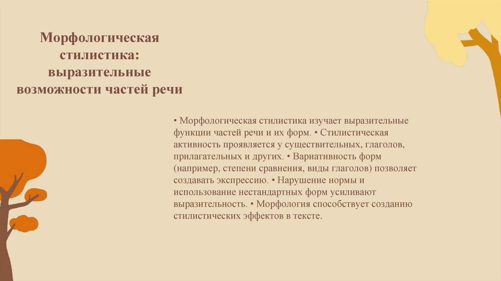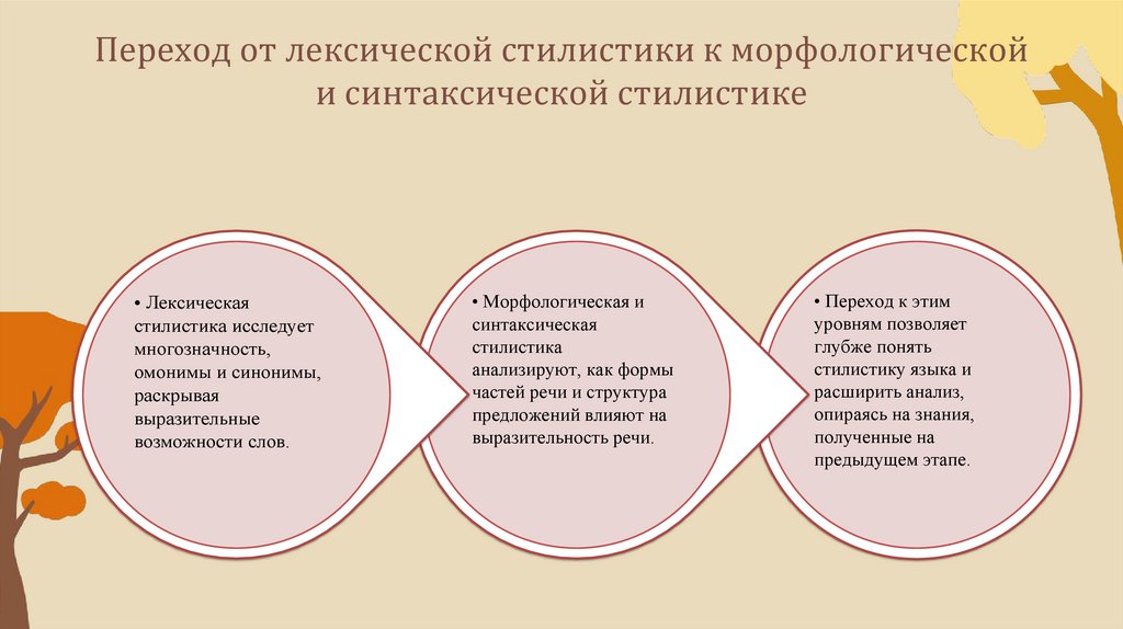 Переход от лексической стилистики к морфологическойи синтаксической стилистике
