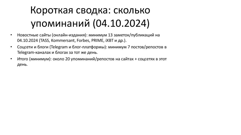 Короткая сводка: сколькоупоминаний (04.10.2024)