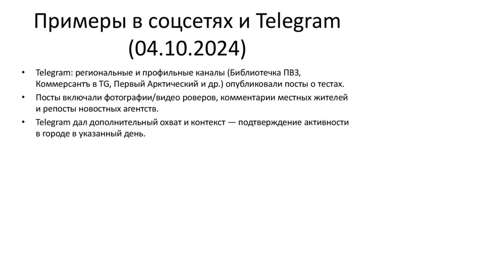 Коммерсантъ в TG, Первый Арктический и др.) опубликовали посты о тестах.
