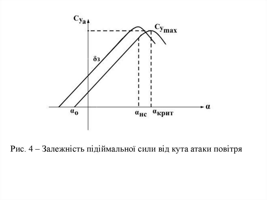 Рис. 4 – Залежність підіймальної сили від кута атаки повітря14.