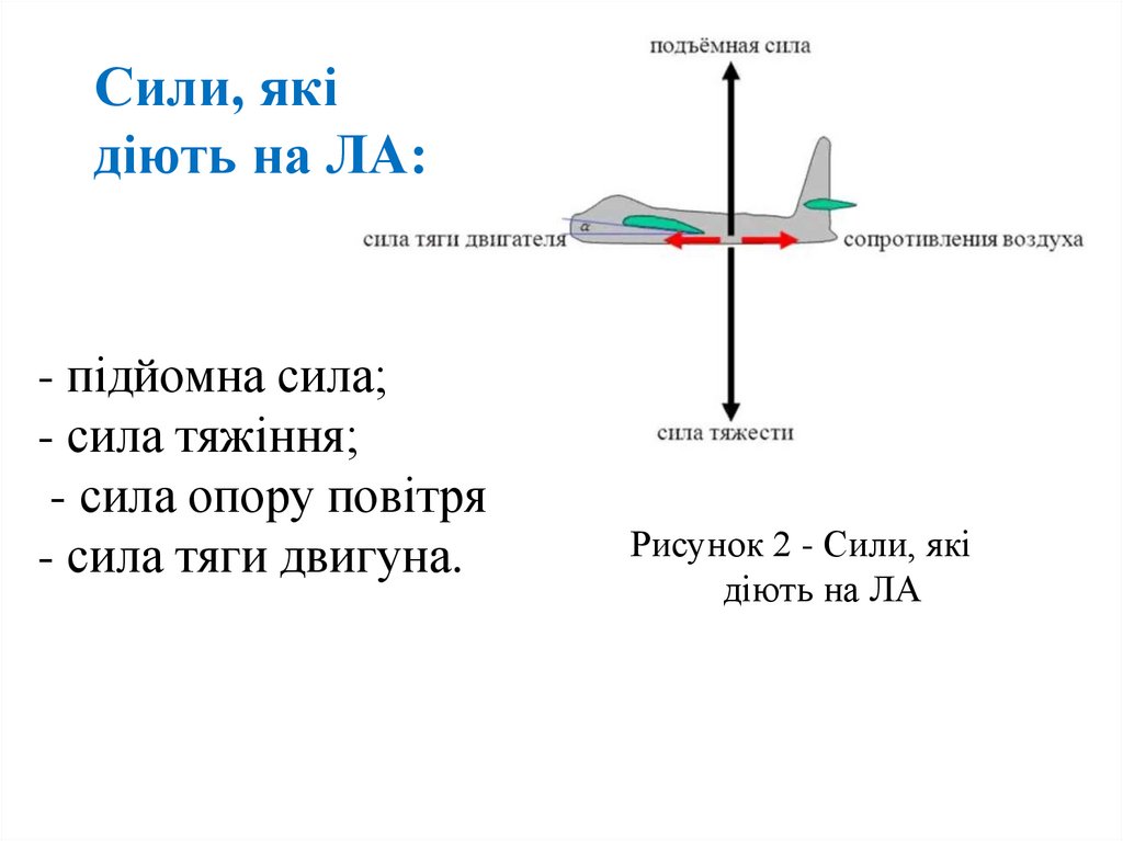 1. Які сили діють на ЛА?2. Де використовують Аеродинамічні
