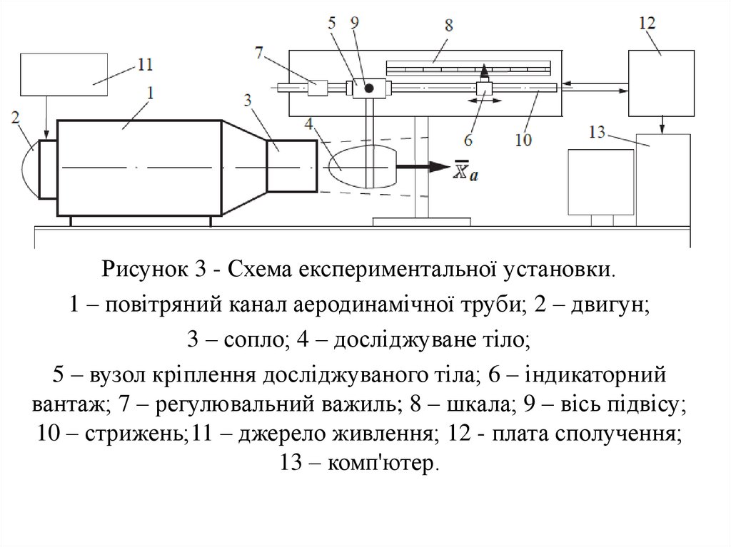 Рисунок 3 - Схема експериментальної установки.1 – повітряний канал аеродинамічної труби; 2 – двигун;