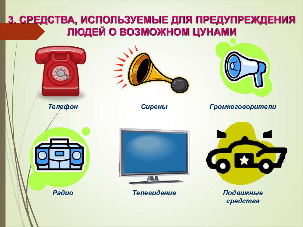 3. СРЕДСТВА, ИСПОЛЬЗУЕМЫЕ ДЛЯ ПРЕДУПРЕЖДЕНИЯЛЮДЕЙ О ВОЗМОЖНОМ ЦУНАМИ