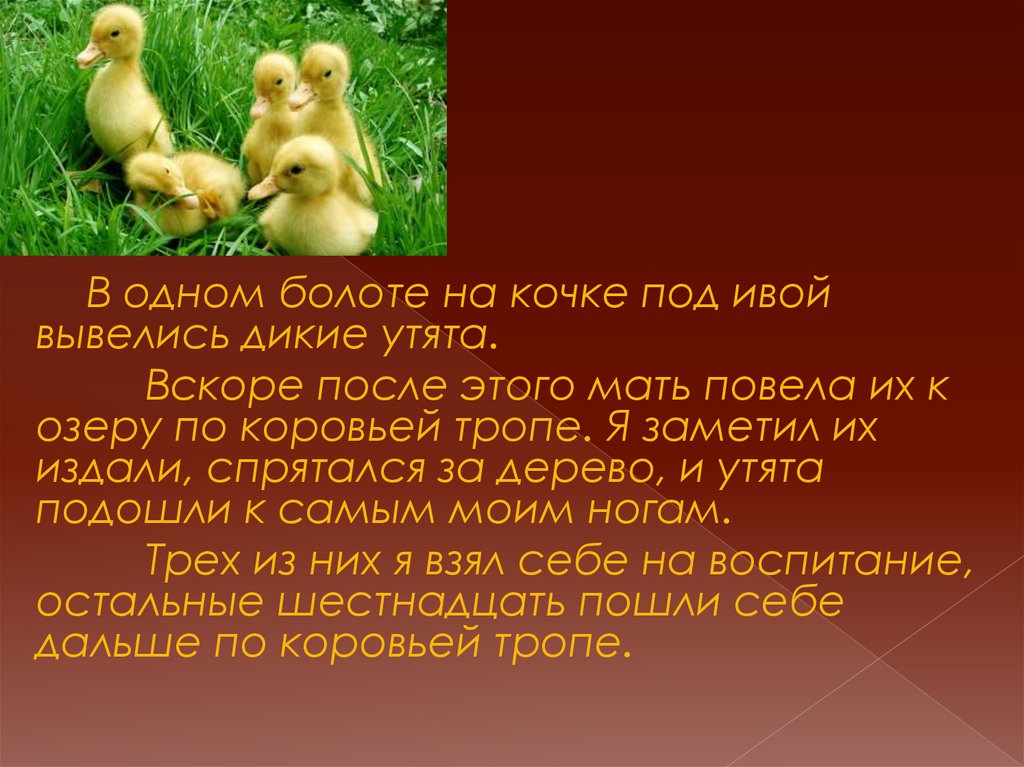В одном болоте на кочке под ивойвывелись дикие утята.