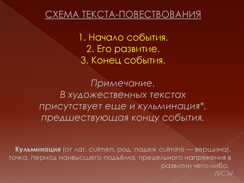 СХЕМА ТЕКСТА-ПОВЕСТВОВАНИЯ1. Начало события.