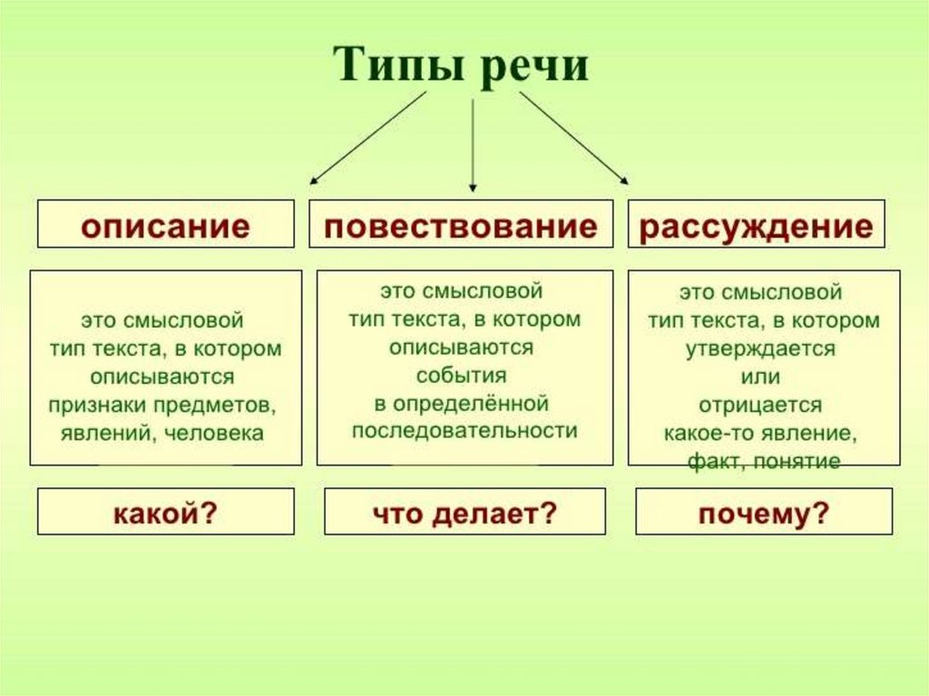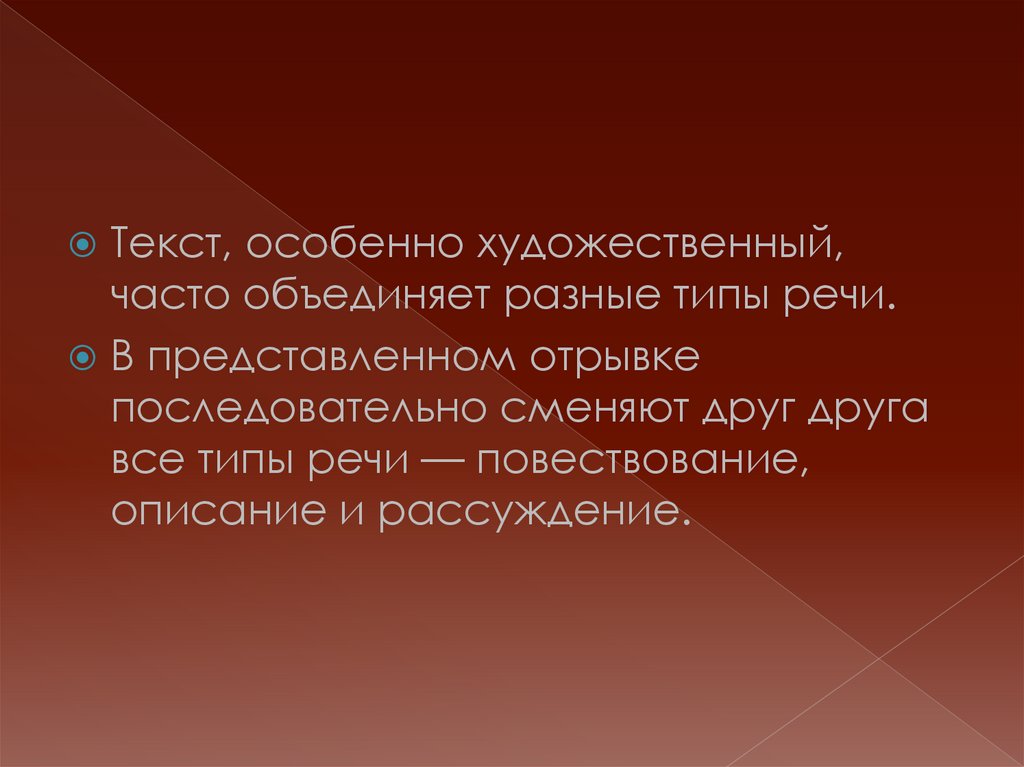 Текст, особенно художественный,часто объединяет разные типы речи.