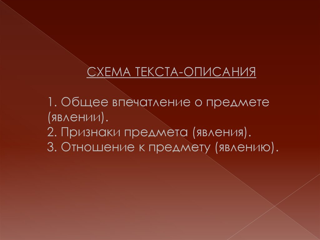 СХЕМА ТЕКСТА-ОПИСАНИЯ1. Общее впечатление о предмете