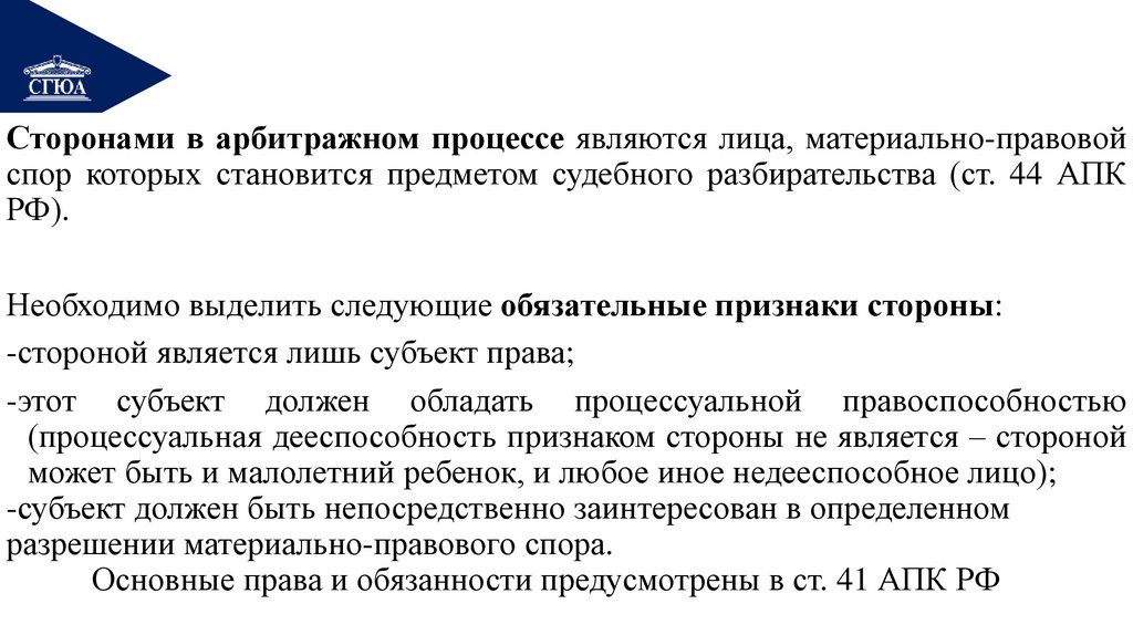2. Стороны в арбитражном процессе: понятие, признаки, права и