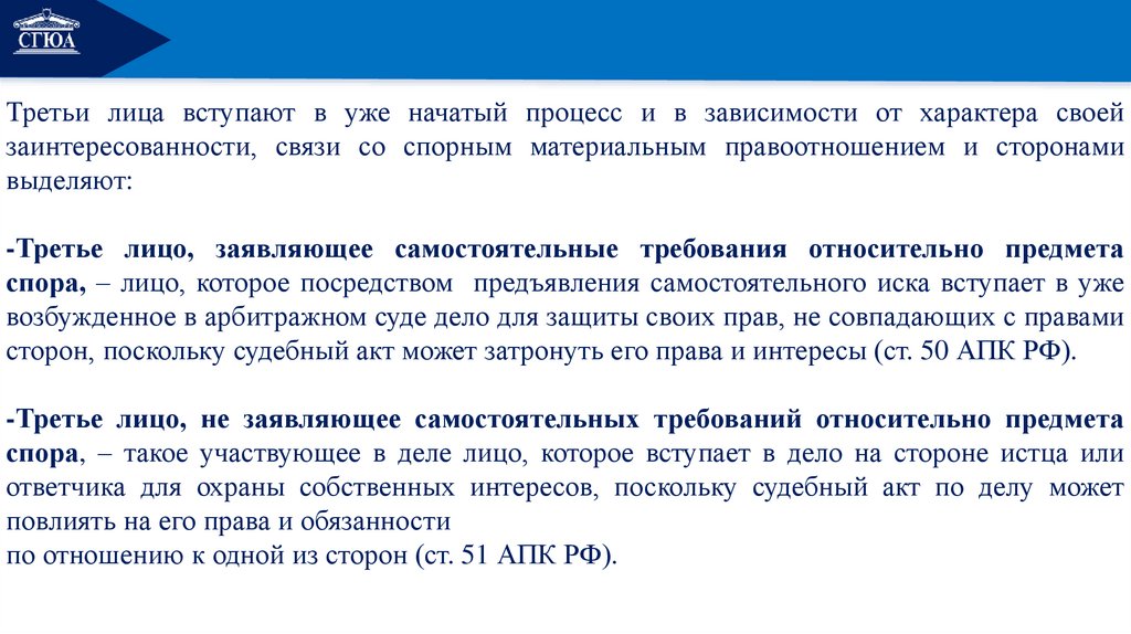 3. Третьи лица в арбитражном процессе: понятие, виды, права и