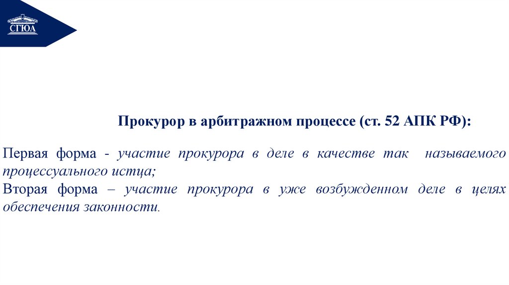 4. Участие прокурора в арбитражном процессе.