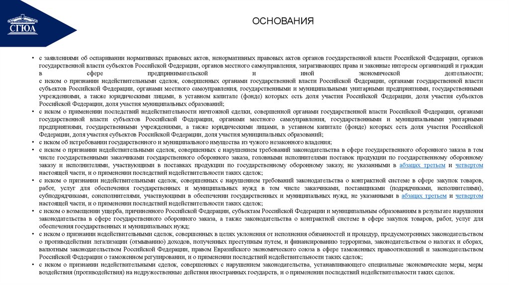 • с иском о признании недействительными сделок, совершенных с нарушением законодательства, устанавливающего специальные экономические меры, меры