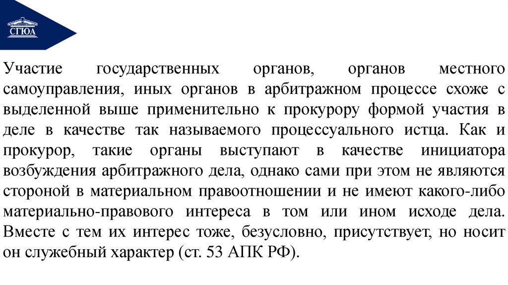 5. Участие в арбитражном процессе государственных органов, органов