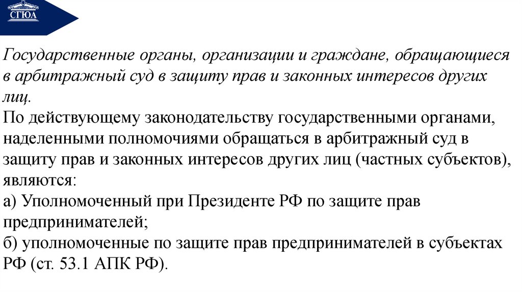 арбитражный суд в защиту прав и законных интересов других лиц;