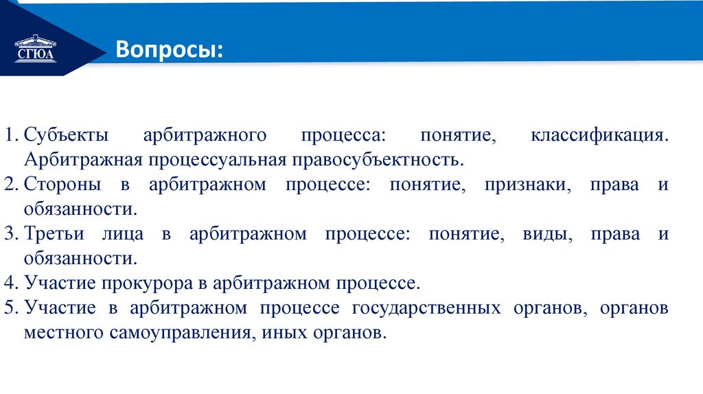 арбитражного процесса.
