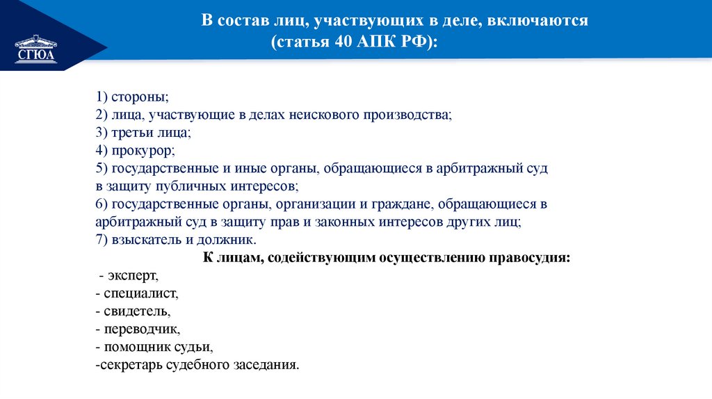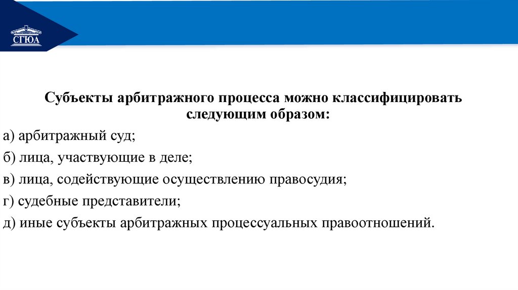 Субъекты арбитражного процесса: понятие, классификация.