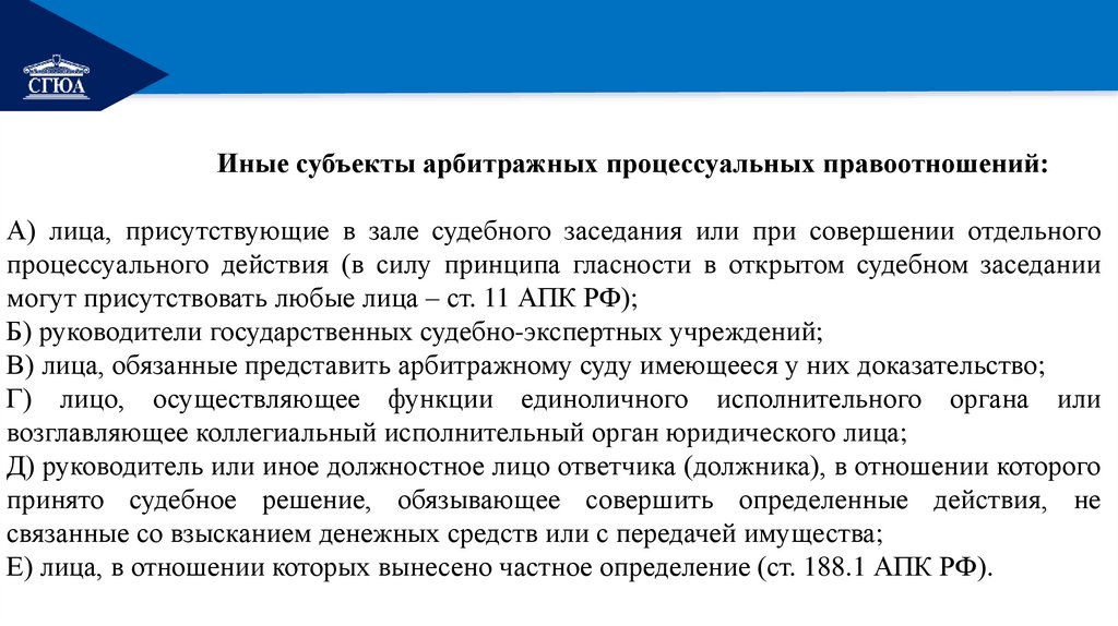 д) иные субъекты арбитражных процессуальных правоотношений.