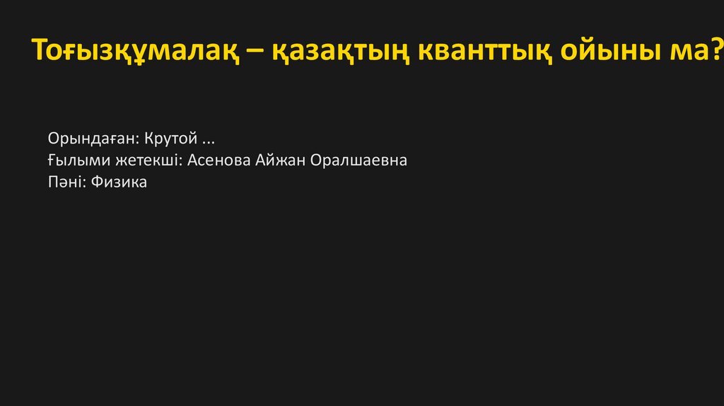 Тоғызқұмалақ – қазақтың кванттық ойыны ма?Орындаған: Крутой ...