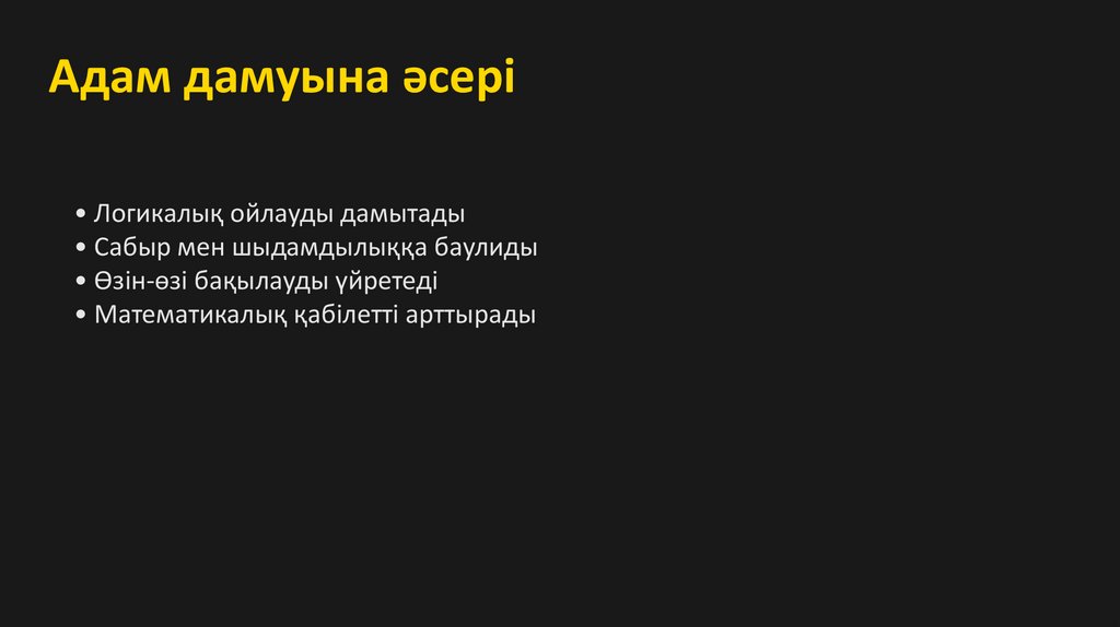 Адам дамуына әсері• Логикалық ойлауды дамытады