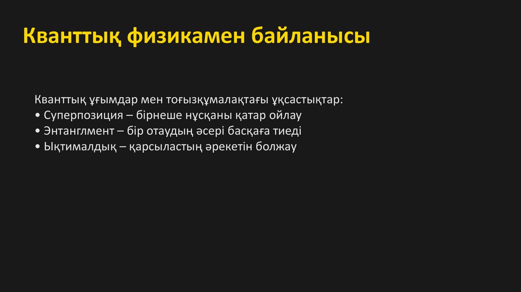 • Суперпозиция – бірнеше нұсқаны қатар ойлау