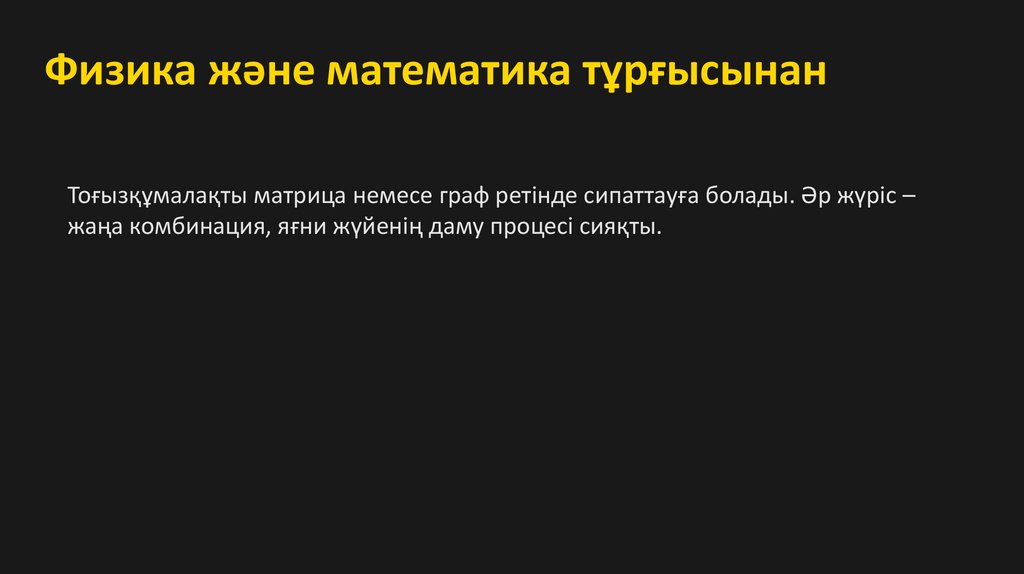 Физика және математика тұрғысынанТоғызқұмалақты матрица немесе граф ретінде сипаттауға болады. Әр жүріс –