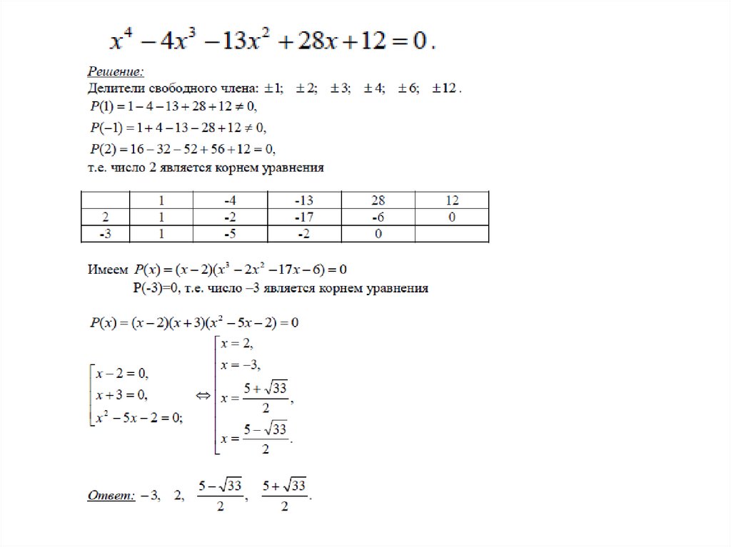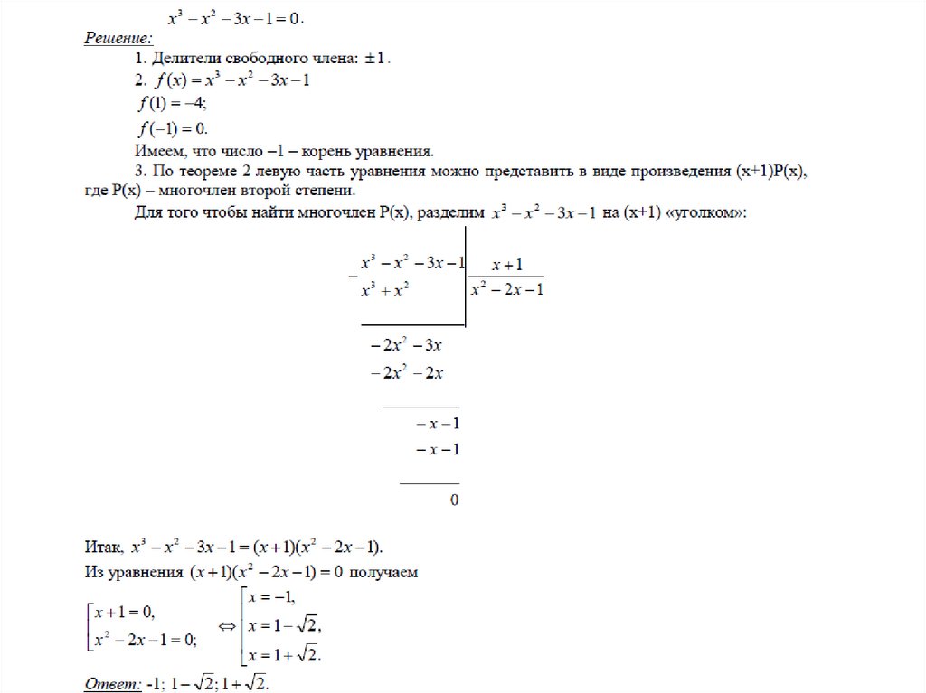 Решение уравнений высших степеней (деление многочлена с помощью