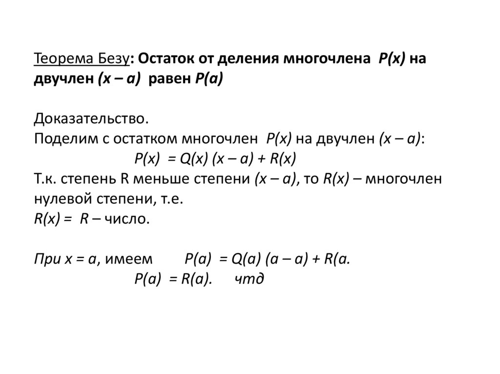 Теорема Безу: Остаток от деления многочлена Р(х) на
