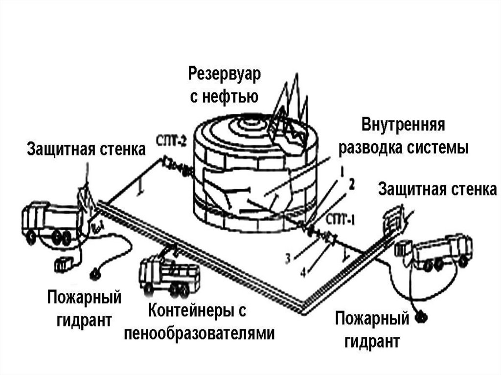 • При ликвидации пожаров врезервуарах, оборудованных системой