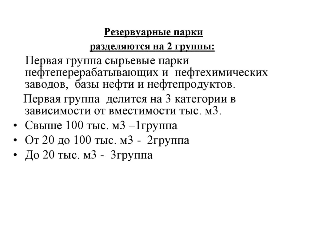 • Резервуарный парк - группа (группы)резервуаров, предназначенных для
