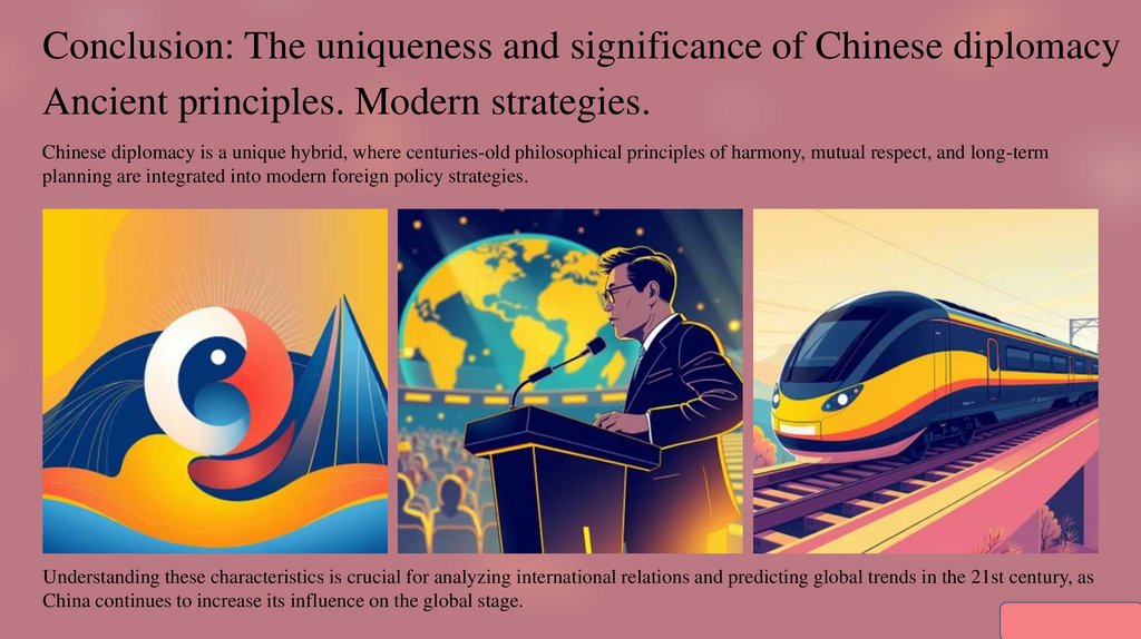 Conclusion: The uniqueness and significance of Chinese diplomacyAncient principles. Modern strategies.