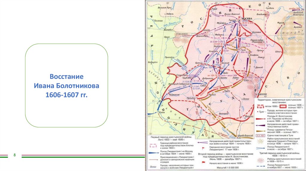 Май 1606 г. - Земский собор избрал царём Василия Шуйского (1606-1610).Июнь 1606 г. - началось восстание Ивана Болотников