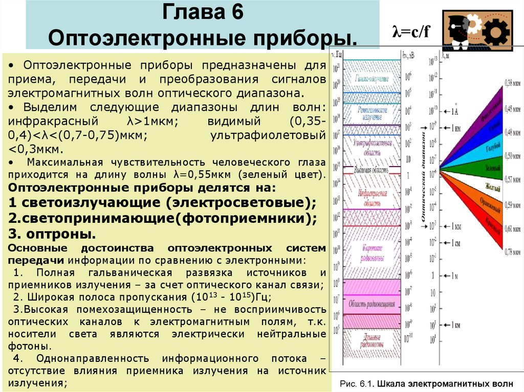 λ=c/f• Оптоэлектронные приборы предназначены для