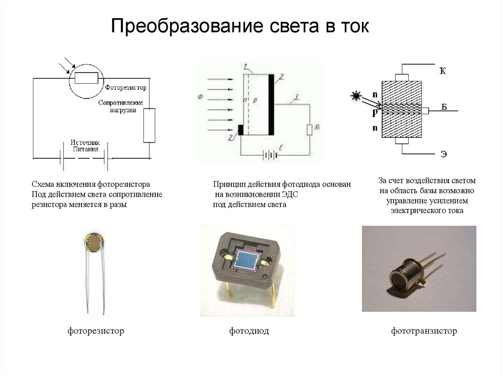 Преобразование света в токСхема включения фоторезистора