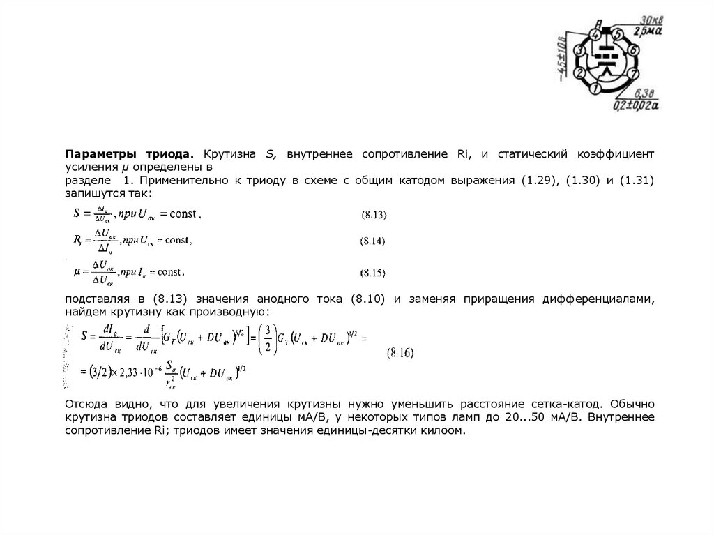 разделе 1. Применительно к триоду в схеме с общим катодом выражения (1.29), (1.30) и (1.31)