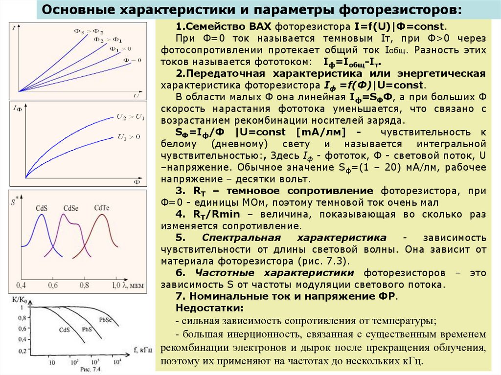 Основные характеристики и параметры фоторезисторов:1.Семейство ВАХ фоторезистора I=f(U)|Ф=const.