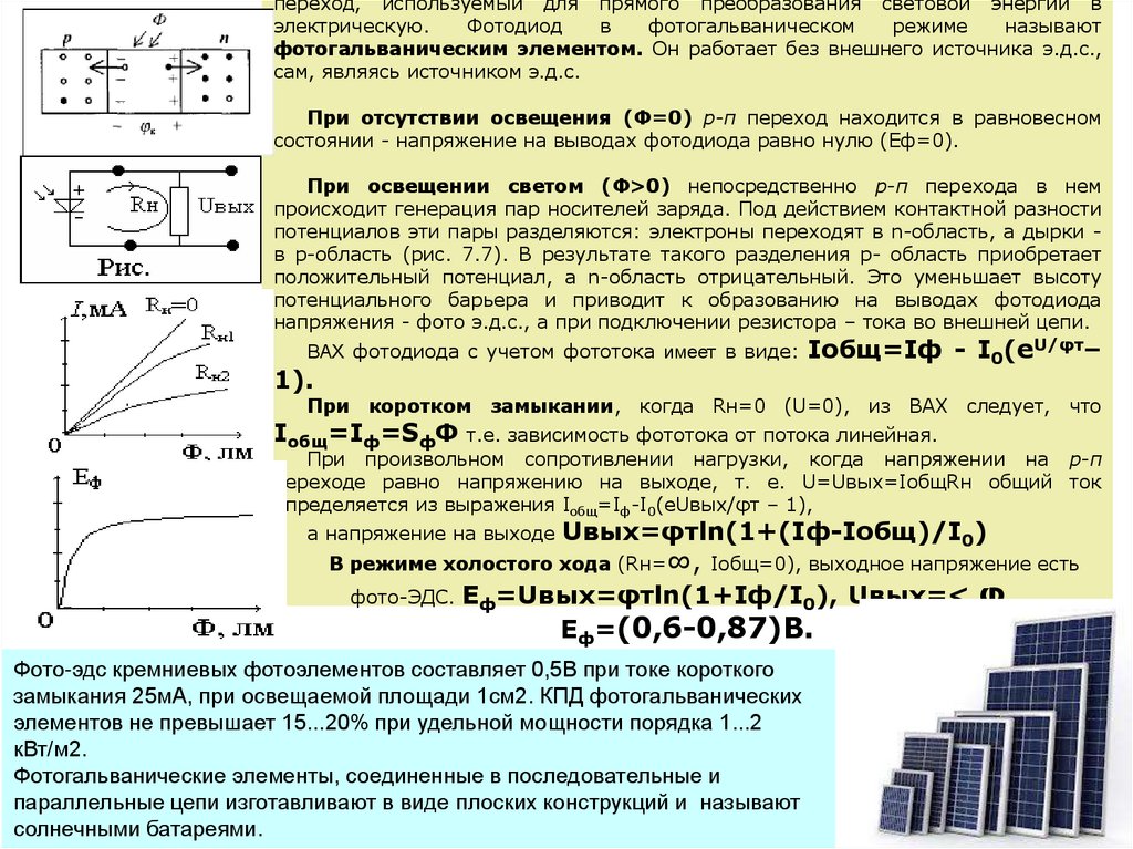 При Ф=0 ток называется темновым Iт, при Ф>0 через