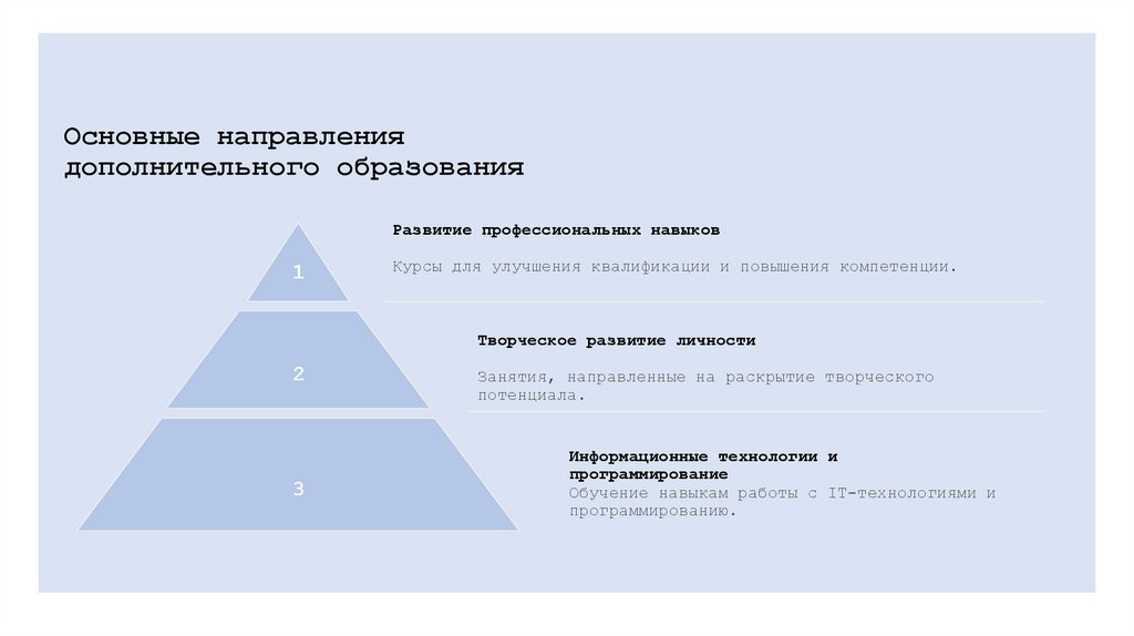 Основные направлениядополнительного образования