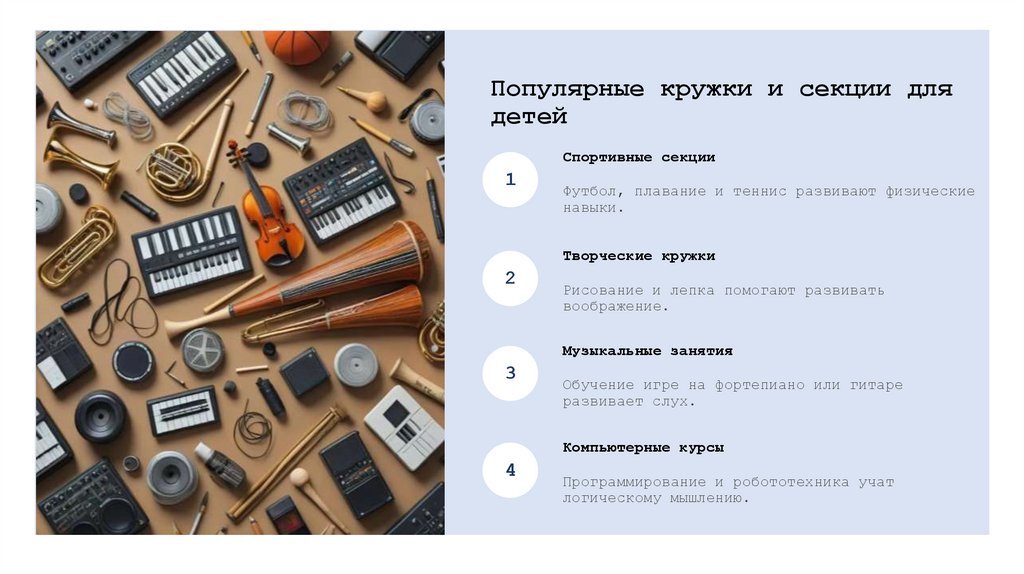 Популярные кружки и секции длядетей