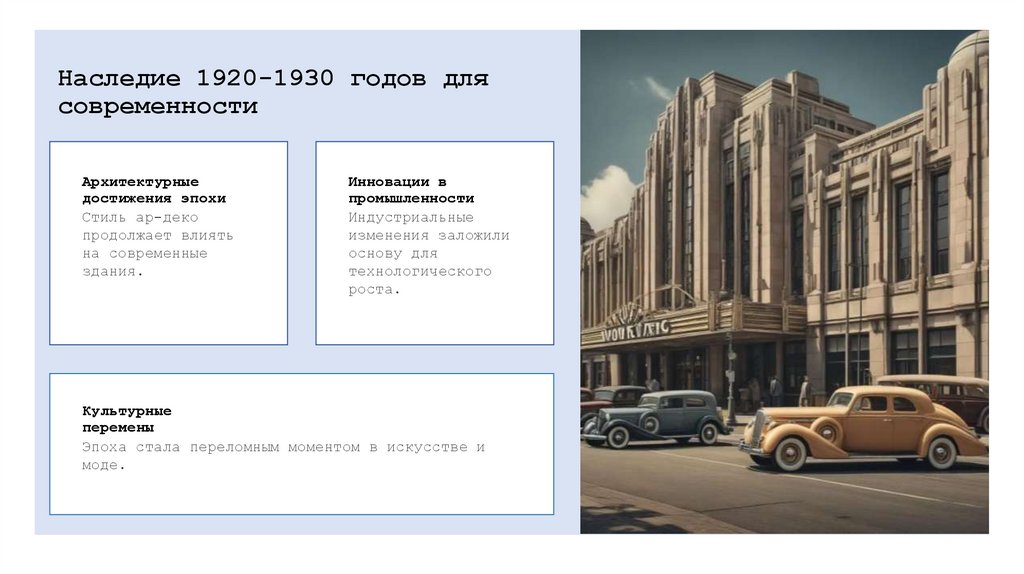 Наследие 1920-1930 годов длясовременности