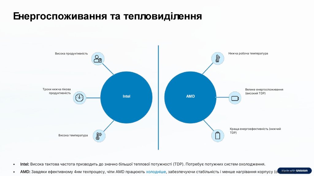 AMD: Завдяки ефективному 4нм техпроцесу, чіпи AMD працюють холодніше, забезпечуючи стабільність і менше нагрівання корпусу (особливо у