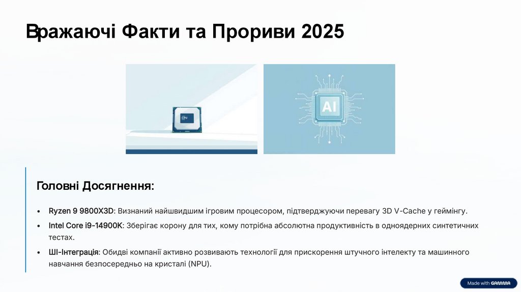 Ryzen 9 9800X3D: Визнаний найшвидшим ігровим процесором, підтверджуючи перевагу 3D V-Cache у геймінгу.