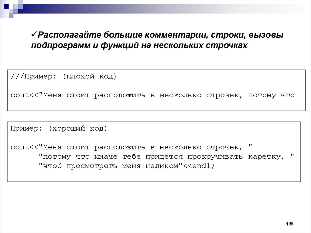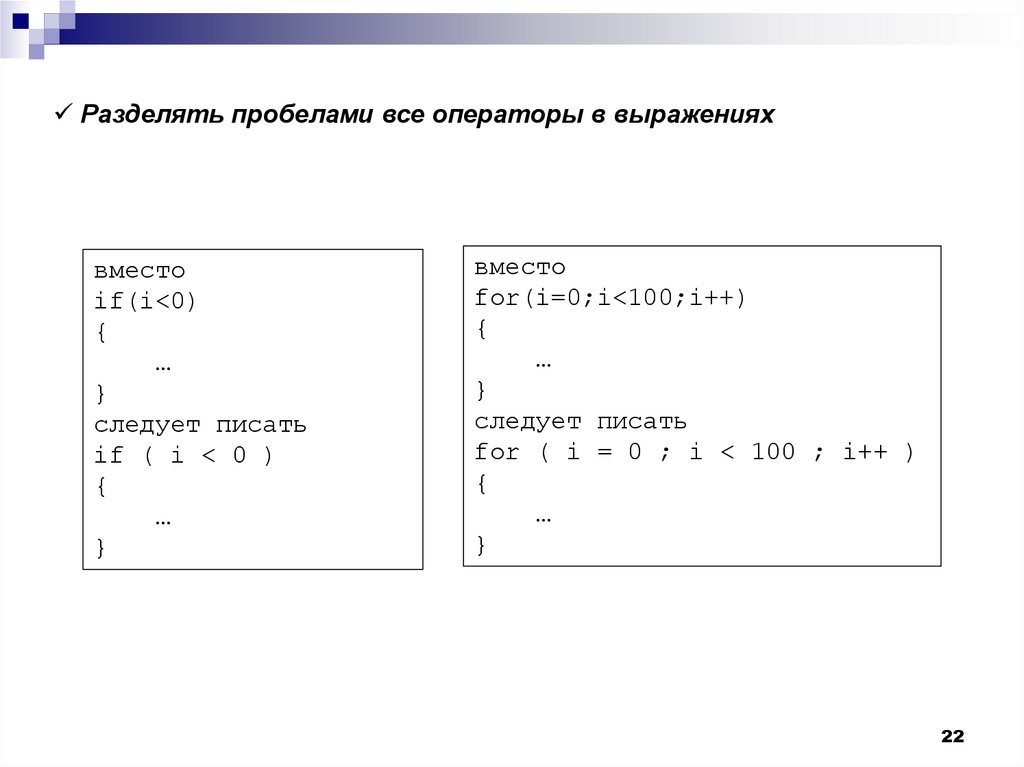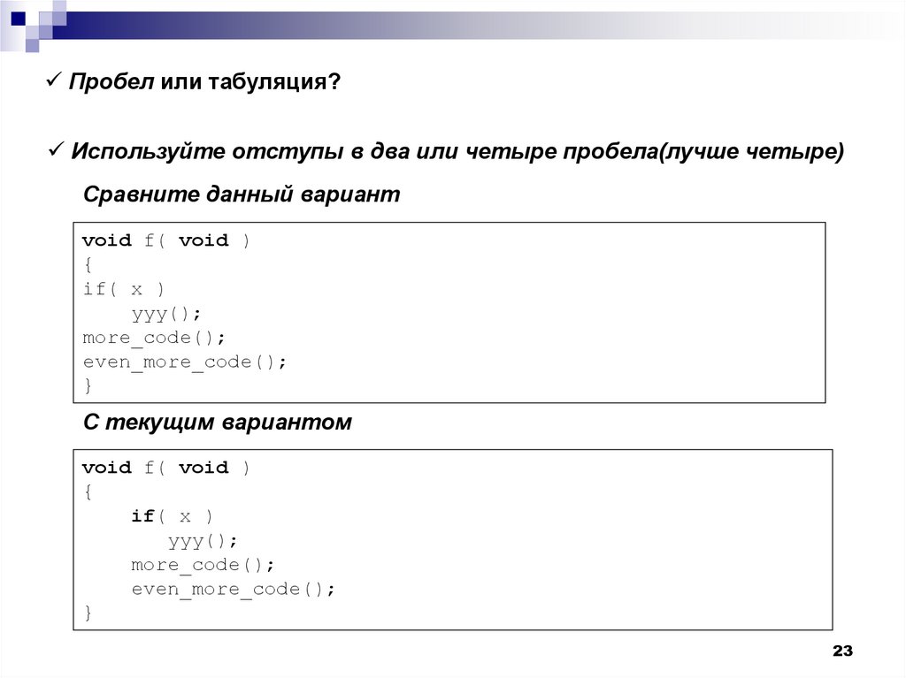 5. Комментарии должны иметь тот же отступ, что и окружающий текст программы