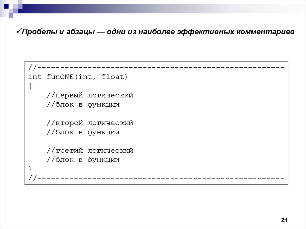 4. Комментарии должны иметь тот же отступ, что и окружающий текст программы