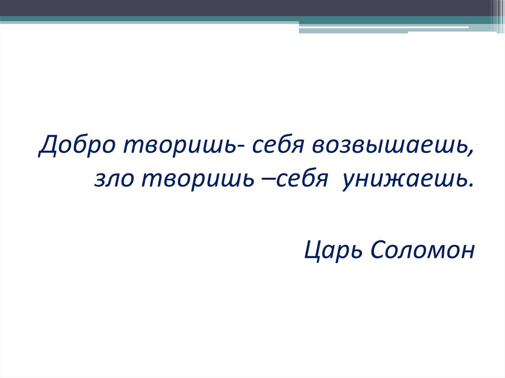 Добро творишь- себя возвышаешь,зло творишь –себя унижаешь.