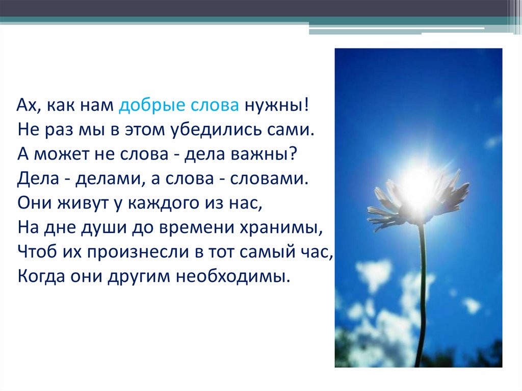Ах, как нам добрые слова нужны!Не раз мы в этом убедились сами.