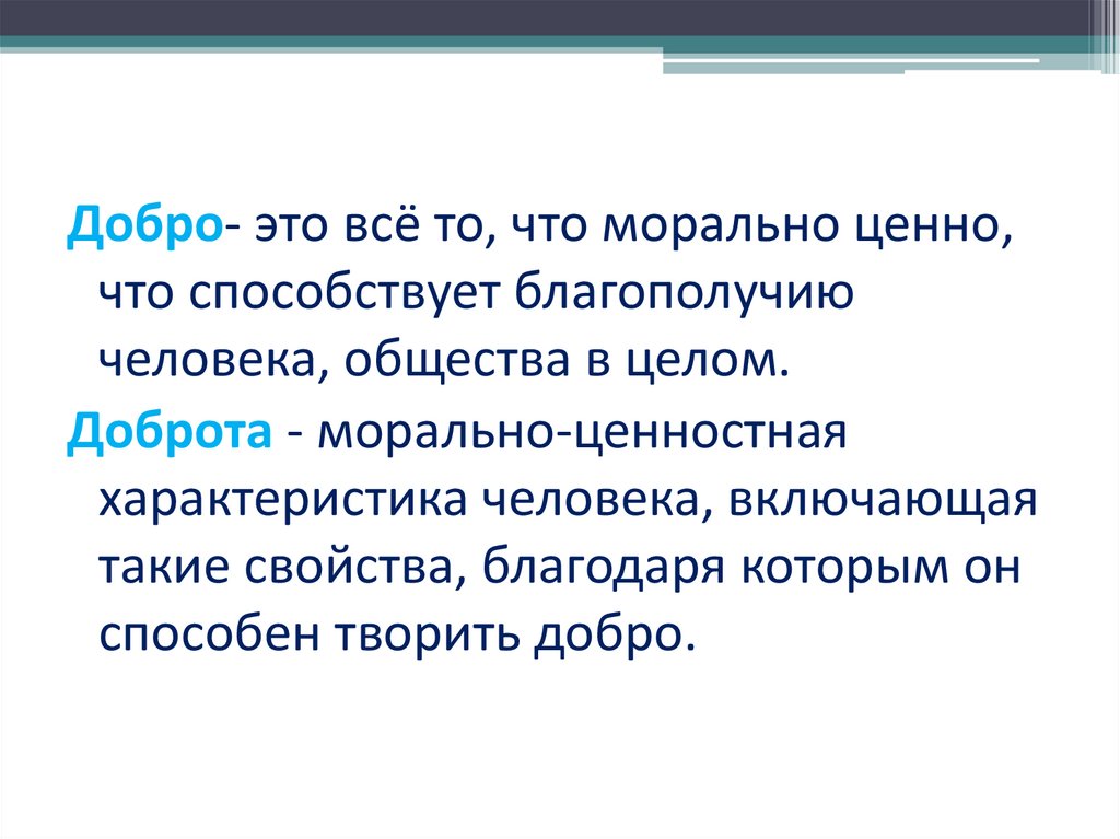 Добро- это всё то, что морально ценно,что способствует благополучию