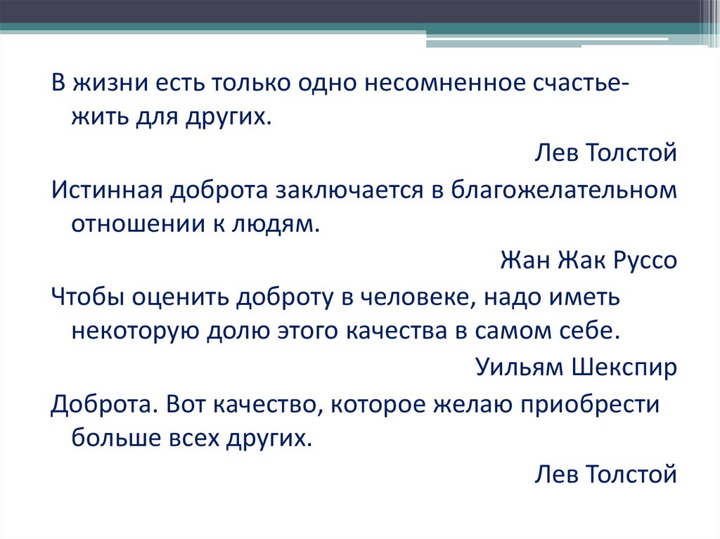 В жизни есть только одно несомненное счастьежить для других.Лев Толстой