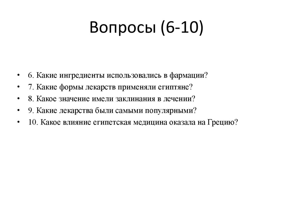 Вопросы (6-10)6. Какие ингредиенты использовались в фармации?