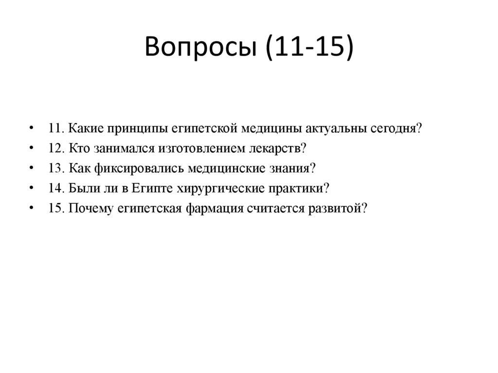 Вопросы (11-15)11. Какие принципы египетской медицины актуальны сегодня?